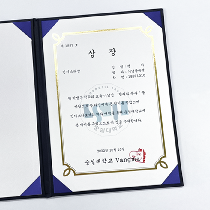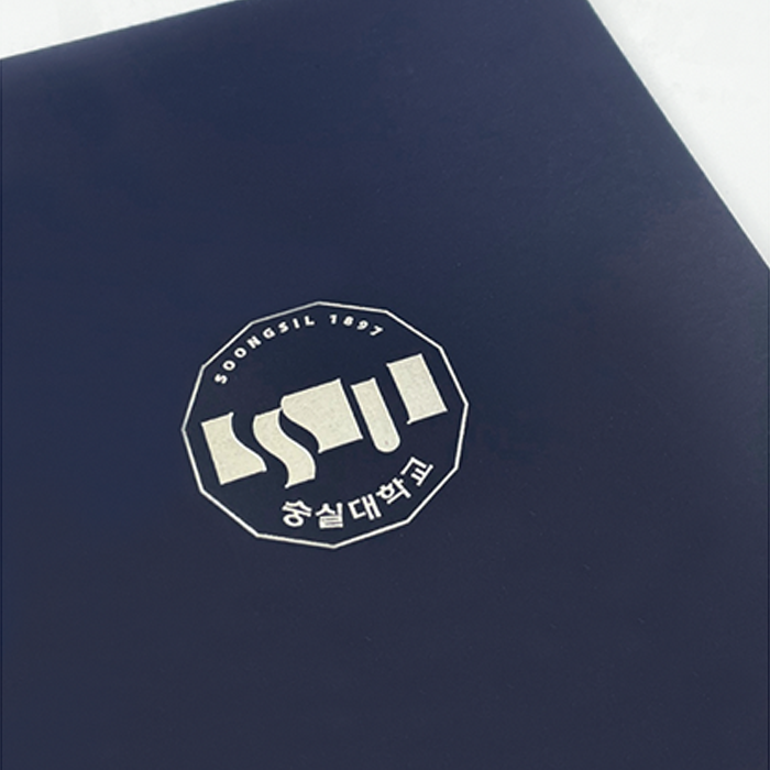 숭실대학교 로고가 은박으로 인쇄된 상장 케이스