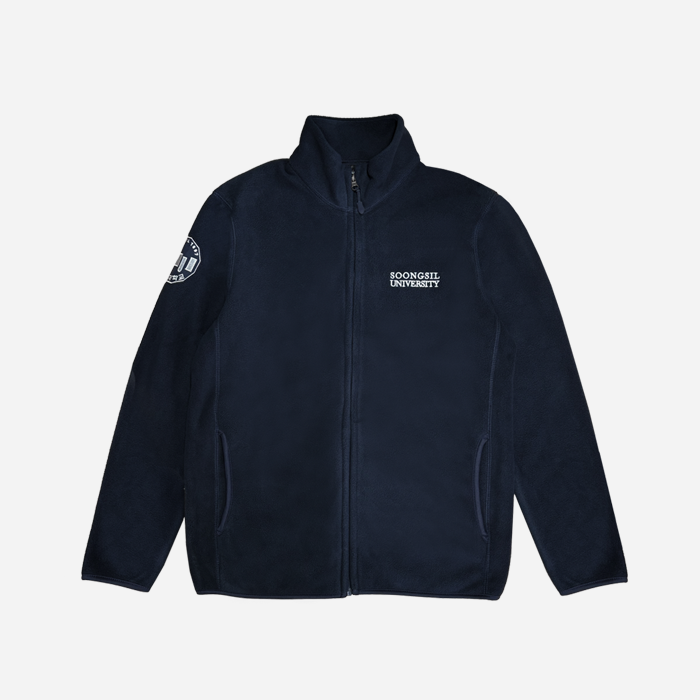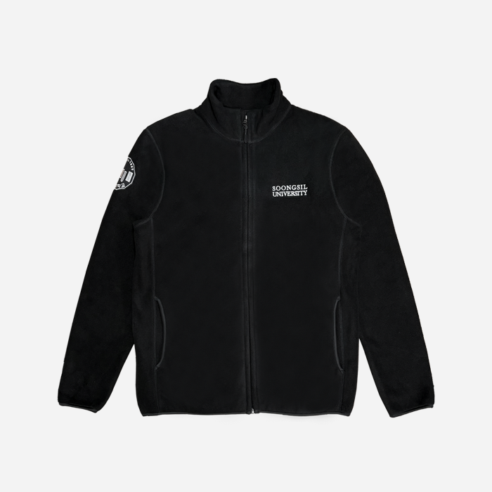 패딩 뒷면에 'SSU'와 '숭실' 글자로 표현한 백마가 자수된 학교잠바