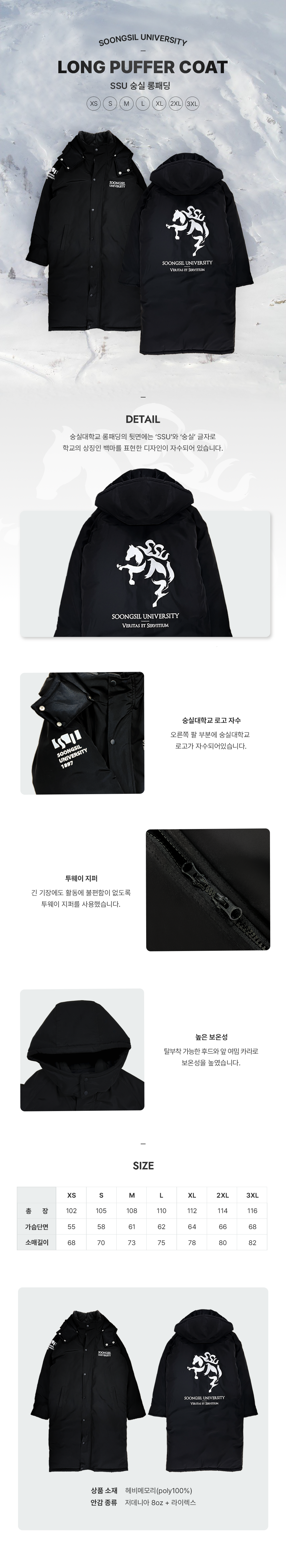 패딩 뒷면에 'SSU'와 '숭실' 글자로 표현한 백마가 자수된 학교잠바