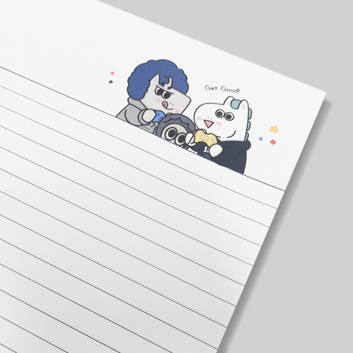 게임하는 뱅마, 파마, 편자 일러스트가 그려진 B5 떡메모지